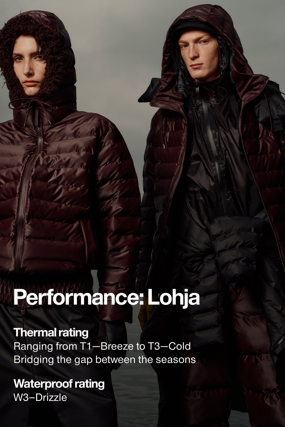 De lichte oplossing. Lohja is een populaire waterdichte jas met lichte isolatie – perfect voor wisselvallig weer. De collectie bestaat uit puffers, bombers en klassieke jassen in verschillende pasvormen – cropped, oversized of meer aansluitend. De zachte isolatie is makkelijk samen te drukken, waardoor de jassen ideaal zijn om mee te nemen onderweg.