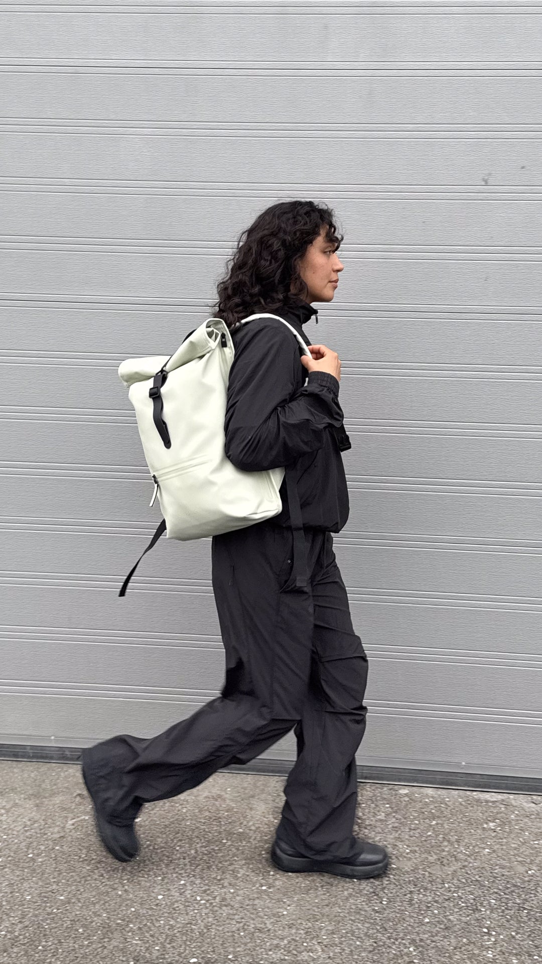 De Cooldown Track Top is gemaakt van mooie lichtgewicht crinkle stof van 100% polyamide-duurzaam, ademend en gemaakt om te bewegen. Het model heeft een relaxte, kortere pasvorm, volumineuze mouwen met ruches, en elastische manchetten en zoom. De gebogen zakken met drukknopen en contrasterende biezen benadrukken de organisch gesneden lijnen, en een spiraalrits completeert de look. Rains borduursel en een subtiel grafisch detail dragen bij aan de look.
