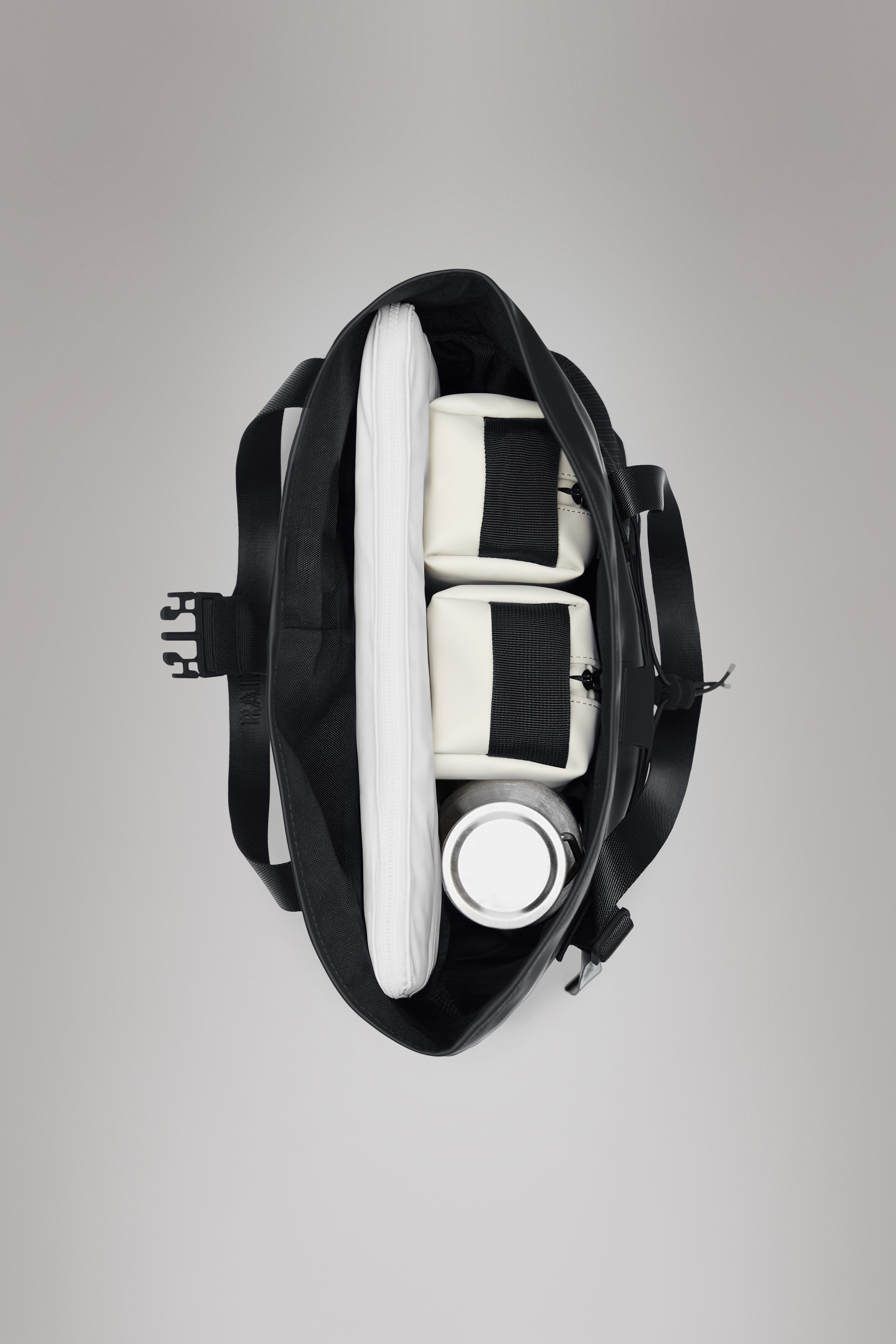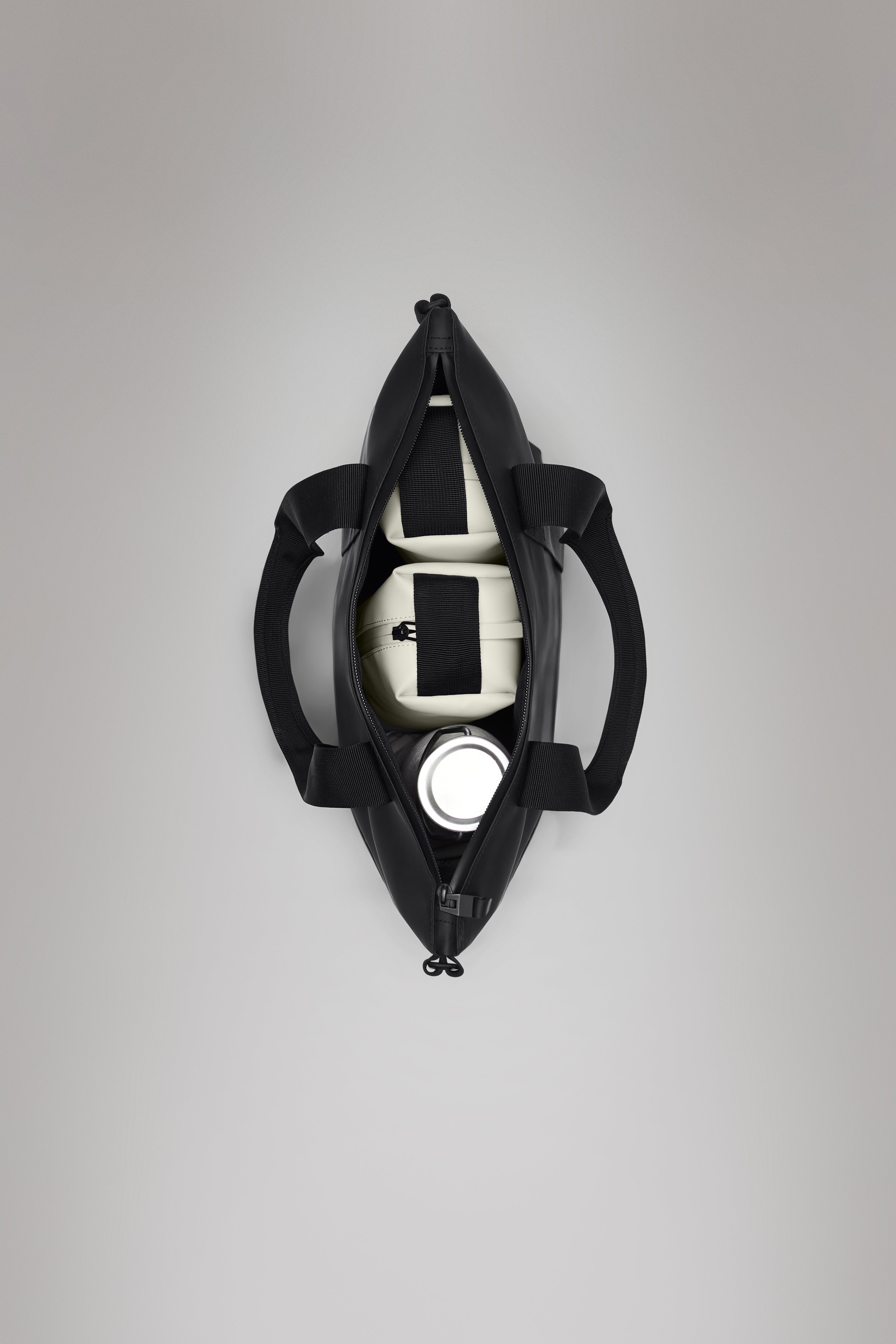 Tote Bag Micro is gemaakt van Rains' kenmerkende PU-stof, ontworpen voor draagkracht en duurzaamheid met een zacht gevoel.