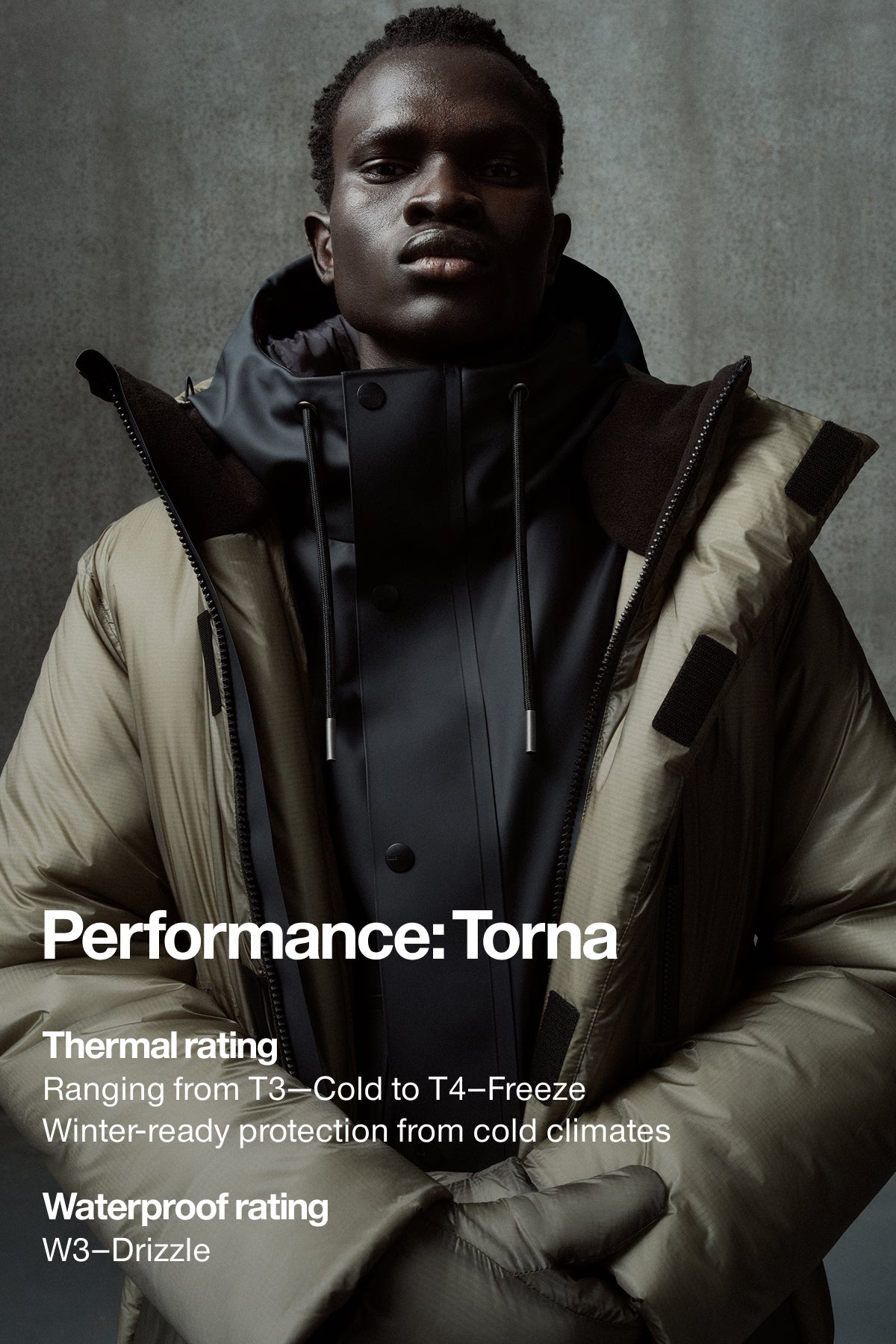 Torna is ontworpen voor koude en natte winterdagen. Gemaakt van duurzaam, waterdicht nylon ripstop en gevoerd met dikke isolatie die de warmte goed vasthoudt. Verstelbare koorden en gelaste naden zorgen voor extra bescherming tegen wind en weer. Een technische buitenkant met een strak, premium uiterlijk.