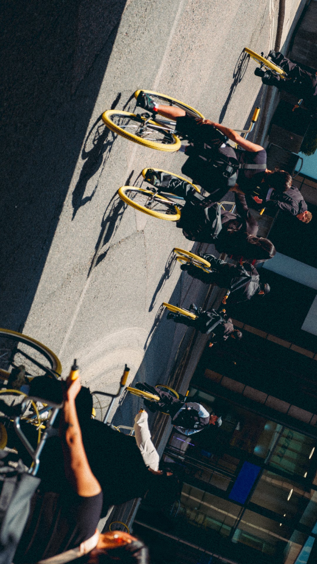 Yellow wheels were spotted from Shoreditch to Embankment as the Rains Bikes made their global debut. The ride, led by BMX rider and videographer Augie, saw 20+ riders come from across the city to take part.