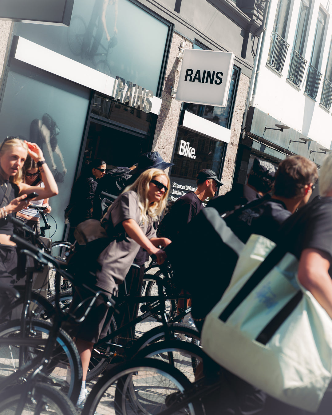 A true cycling city, Copenhagen was ready for this stage of the Rains Bike rides. The last stop for Rains Bike summer, for now. After meeting at our Amagertorv store, everyone moved through the city on the ultra-sleek, all black hybrid bikes. The definition of urban minimalism.