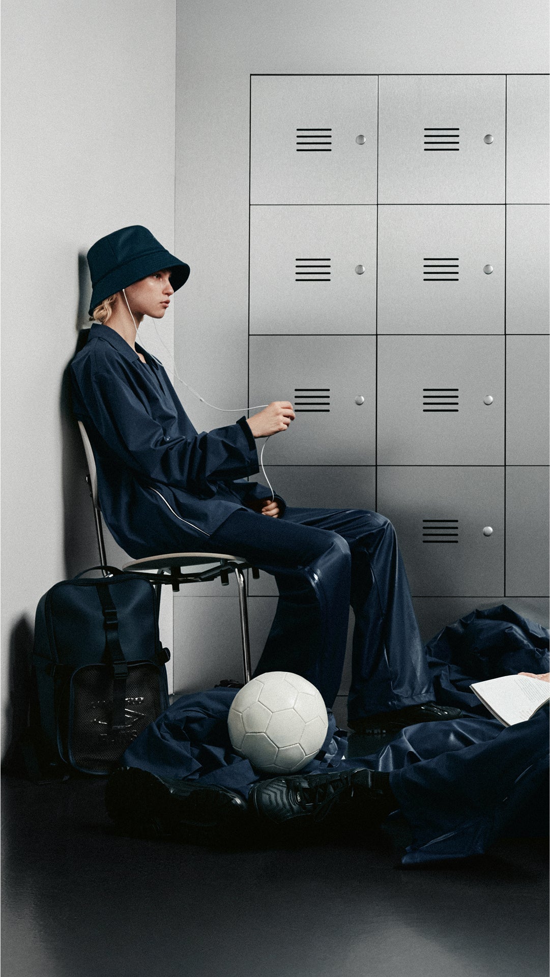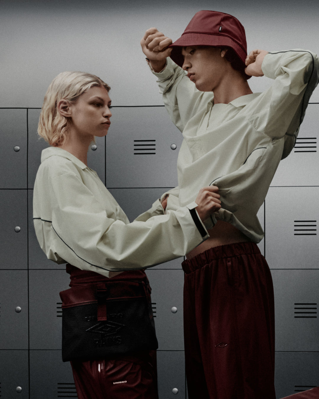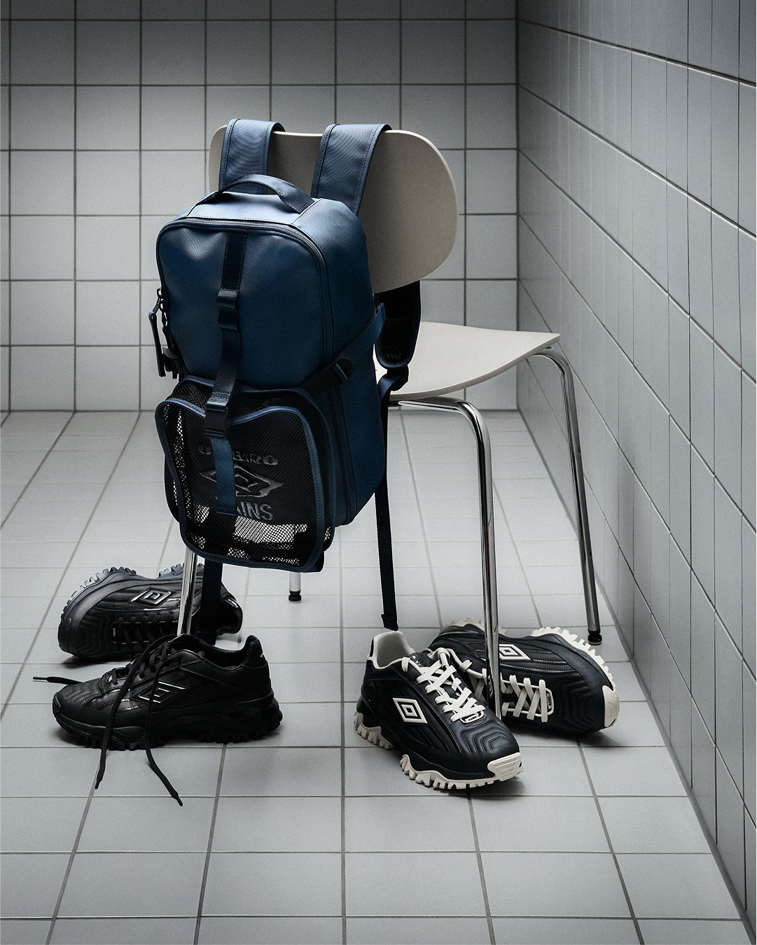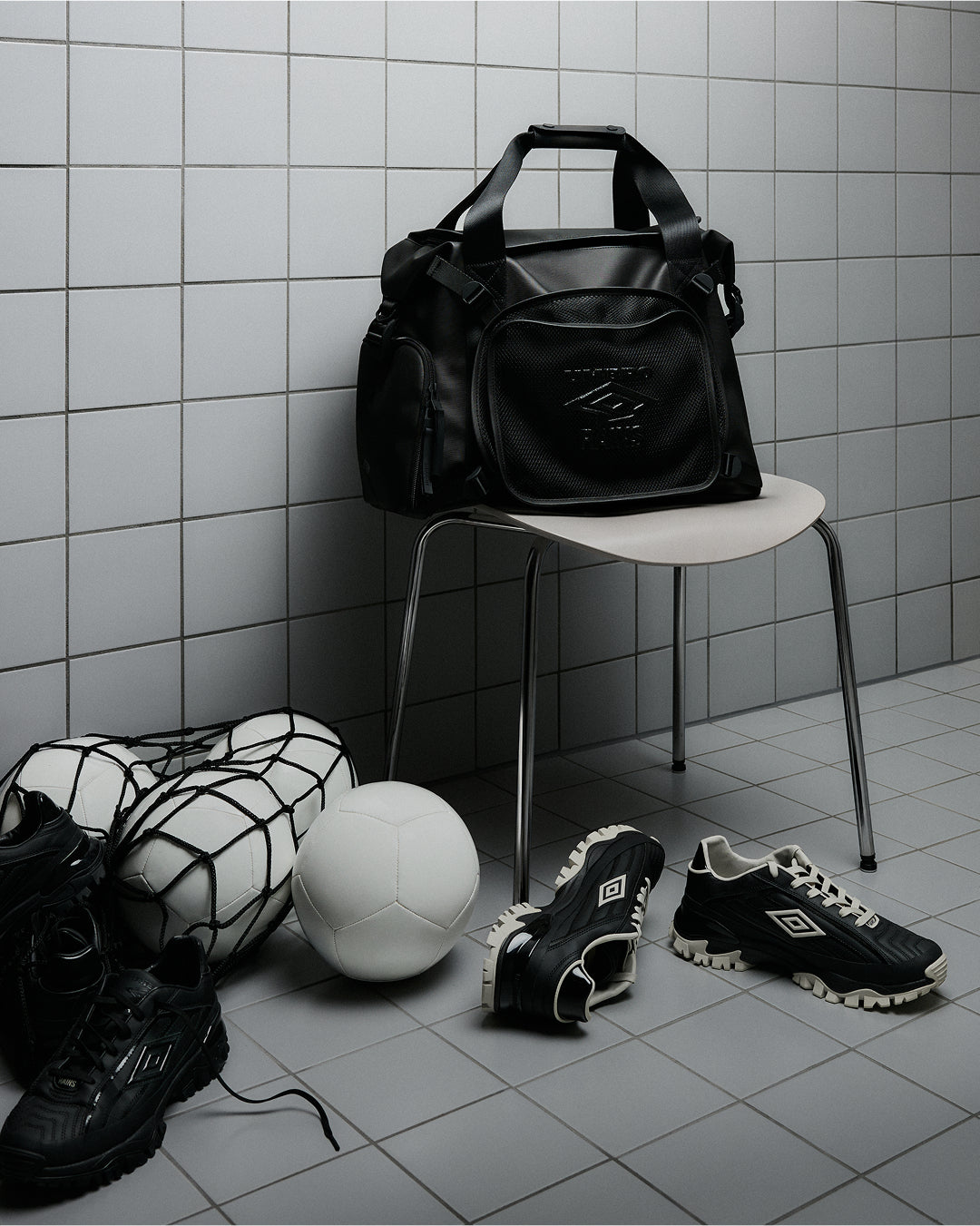 Optimized for both form and function. All designs are cut from our signature lightweight, waterproof PU or our windproof, UV-resistant fabric. Shaped into our sleek, urban silhouettes with a nod to Umbro’s sportswear aesthetic. To be worn off-the-pitch and in the city.