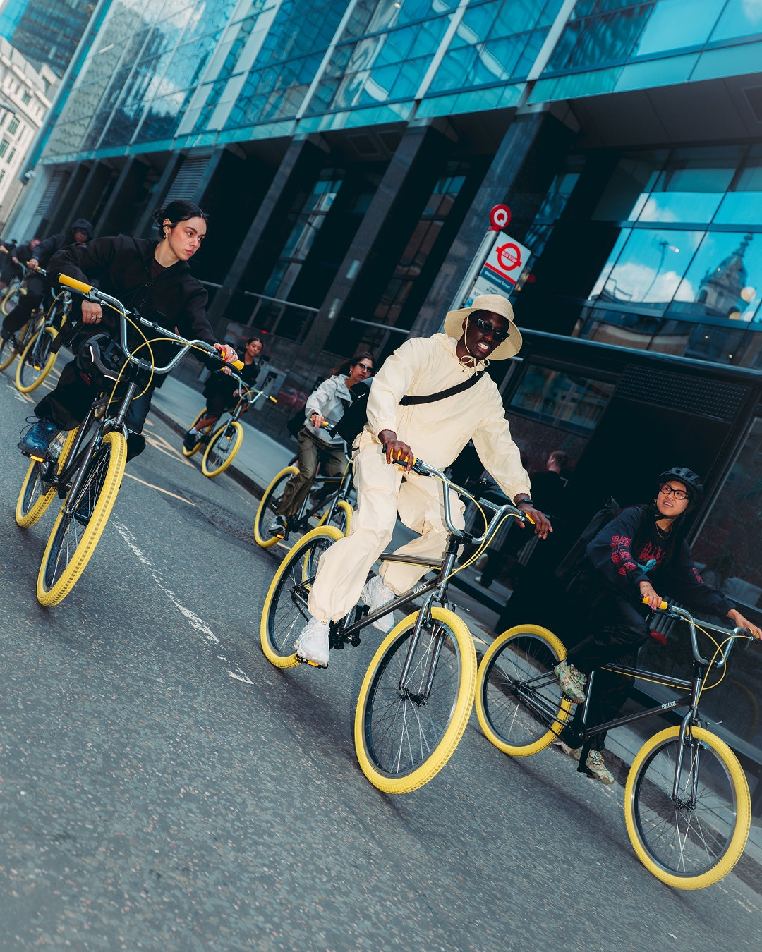 Yellow wheels took over central London as the Rains bikes made their global debut. The London-exclusive chrome bike was hard to miss as 20 riders weaved their way through the city, from Shoreditch to Embankment.